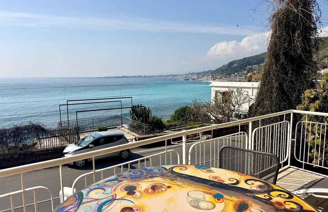 Apartamenty Blue Lagune Taormina Mare zapraszają na nocleg podczas podróży do Taormina. Apartamenty mają kafelki na podłodze.